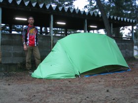 ←すぐ避難できるように東屋のすぐ横に設営です