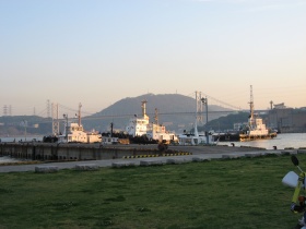 でもその前に関門海峡を反対側から見てみることに。やっぱり狭いよね。