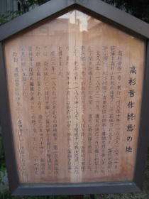 それからまずは白石正一郎の家跡へ向かったんだけど、良く分かりません。仕方ないから高杉晋作の終焉の地へと向かいます。といってももの凄い近くなんだけどね。