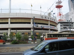 それから原爆ドームへと向かいます。ぐるっと道を回り込むと目の前に現れたのが「広島市民球場」