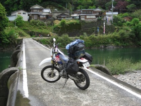 でもね、この沈下橋は車で渡るのは絶対に無理。バイクも橋自体は問題無いんだけど、渡った先が田んぼの畦道なんです。ということで、大きなバイクではちょっとした覚悟をもって渡ってください。オフ車なら全然問題ないけどね。