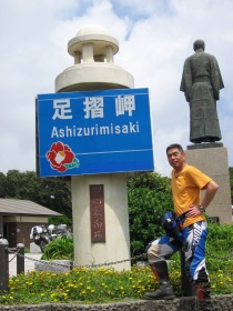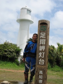 バイクは中浜万次郎さんの銅像の横に止めて(ここ以外バイクは止める場所は余りありません)、岬へと向かいます。大きな「足摺岬」の看板は岬の先端にはないんだけど、一応あちこちで記念撮影を済ませ、灯台の周辺なども少し散策して見ました。
