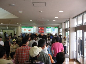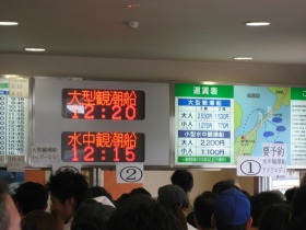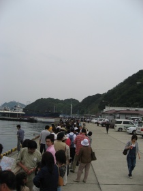 でも、この行列に並ばないと渦潮を見ることが出来ません。ということで、辛抱して並び乗船券ゲット。それから表に出てまだ行列です。