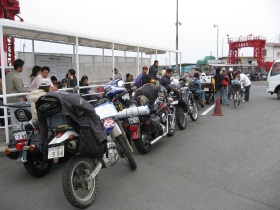 フェリーターミナルには結構バイクが止まっていて、もしかしたら一便待ちになるかもといわれましたが、ラッキーなことに最後尾でフェリーに乗ることができました。