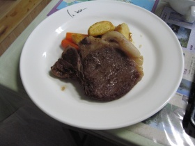ここ近江八幡ユースは夕食が3種類用意されていて、+3000円で近江牛ステーキを選択することができる用になってます。ユースの人の説明では普通のレストランでは5000円以上する位のものですよ。ということだったので、ちぃにぃは当然それを選択しました。