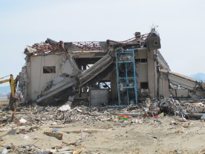 普通の街中なのに、海の近くと言うことは感じられないんだけど、ここも津波の被害を受けていたようで、民家の一階は浸水していて荷物の搬出をしていました。
