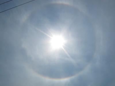 町を菜晴れようとしていたところで空を見上げると、太陽の周りに虹の輪が出来ていました。