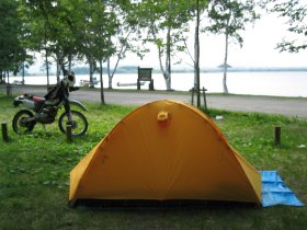 到着。テントの設営をしてから買い出しと温泉に・・・