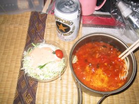 そろそろ、バンガローに戻って夕飯を作らなきゃ!今日はスパゲッティーとサラダです。