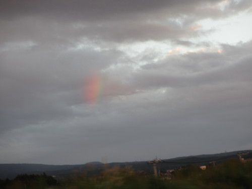 沼津辺りでちょうど日没のタイミングに重なり、珍しい虹が出ていました。