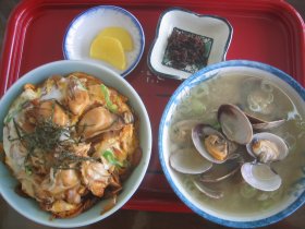 チョット遅い昼食にしました。お気に入りの「カキ丼」で〜す。