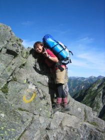 四ツ目は北穂への登り。とにかく急な道というより岩を四つんばいになりながら登る。ザックの重さが肩にずっしりとのしかかる。足も疲れ、岩をよじ登ることばかりなので腕も疲れてくる。おまけに指先は岩の攻撃を受けヒリヒリしてくる。