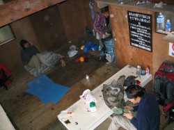 避難小屋にはちゃんと箒がおいてあり、使用後は掃除をしましょうと注意書きもあったが、先発組の高校生達(引率の教師と思われる人もいたのに)は部屋を掃除もしないで出て行った様である。