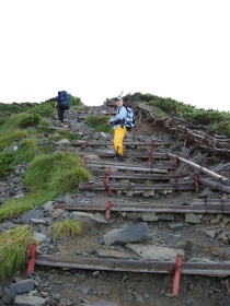 少し急な登りを終えると目の前に独標が見えてきた、と思ったのは心の中だけ。相変わらずガスガスガス。