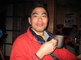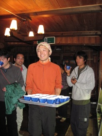 でも、冬のこの時期は唇の乾きなどが強いから、なかなかうまく吹けないと言い訳しきり。止めようと思ったときに、小屋の若手が気を利かせたのか、半分いじめなのか唇の乾きを潤すための「ポカリスエット」を届けたおかげで、オーナーも渋々演奏を続けることに(^o^)