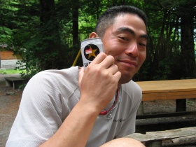 なんてしていたら、相談所の前にforest8810さんがやってきました。我々より少し前に降りていた様子です。小屋の前でビールを飲んでいないから、キットまだだろうと思ったようです(笑)