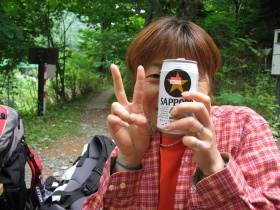 ということで、早速広河原小屋の自動販売機でビールを購入して、お疲れ様〜