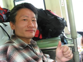 我らはバスに乗り込もうと順番待ちをしていますが、一台目のバスでは座れないことがわかったので次のバスを待っていると、バス会社の人か、それとも山関係の人か、役場の人か知らないけど言うことが混乱してます。