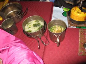 日の出までには少し時間もあるし、朝ご飯を済ませ、荷造りの開始。