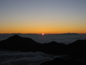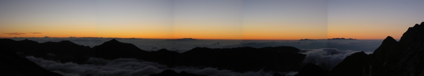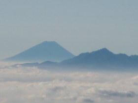 5時頃東の空が明るくなってきて、うっすらと赤くなってきた。雲海がとってもきれいで、遠くには八ヶ岳から富士山、南アルプスという見慣れた風景が展開している。