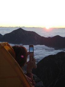 なんて朝日に感動しているのも一瞬の出来事として早々に出発準備を済ませないといけないよね。何たって今日は前穂経由で上高地へ降り、そのまま帰宅するんだから。