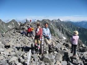 いやー奥穂山頂は三度目の登頂だけど、今までの二回はガスガスで展望なし、ジャンの姿どころか数メートル先も望むことができなかったけど、今回は本当にばっちり。