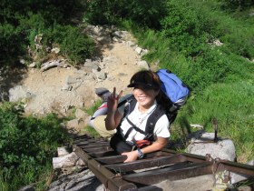 紀美子平からはツルツルした斜面を鎖頼りに一気に下るんだよね。いやー登りたくないよね、この道は(^o^)