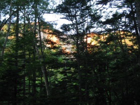 宿のオジサンは「天狗岳への道はしっかりしているから大丈夫だよ」と声をかけられてました。硫黄岳の爆裂火口が朝日に焼けてきれいです。朝露天風呂に入ってきた人たちを横目に見ながら出発です。