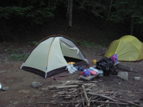 周りにテントを張っている人たちはぐっすり眠っているみたいです。今日は降りるだけなのかな。