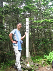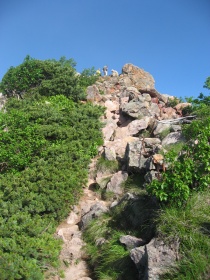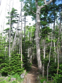 やがて、正面上の方の木々が少なくなってきて、時々青空が見えてきました。すると一気に森林限界を越え稜線へと到着です。