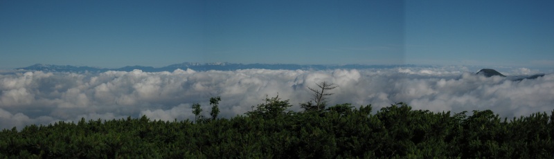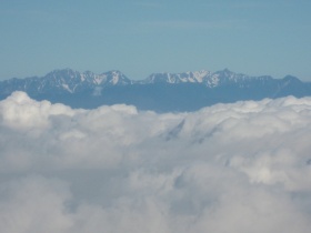 少し南に目を向けると、御嶽山とか中央アルプス、そして南アルプスも仙丈ヶ岳から甲斐駒、北岳、遠くには塩見岳などがよく見えます。あいにく富士山は硫黄岳の影に隠れて見えないんですが・・・