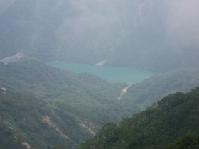 眼下にはエメラルドブルーの湖が見えます