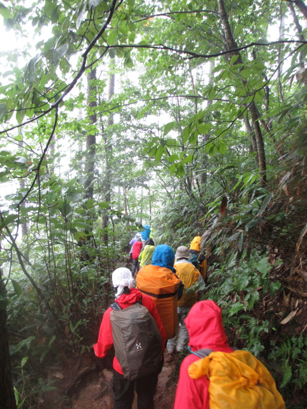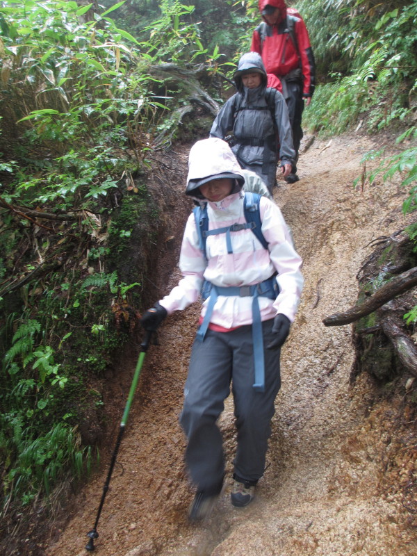 雨なんて関係なく、元気に下山開始です。